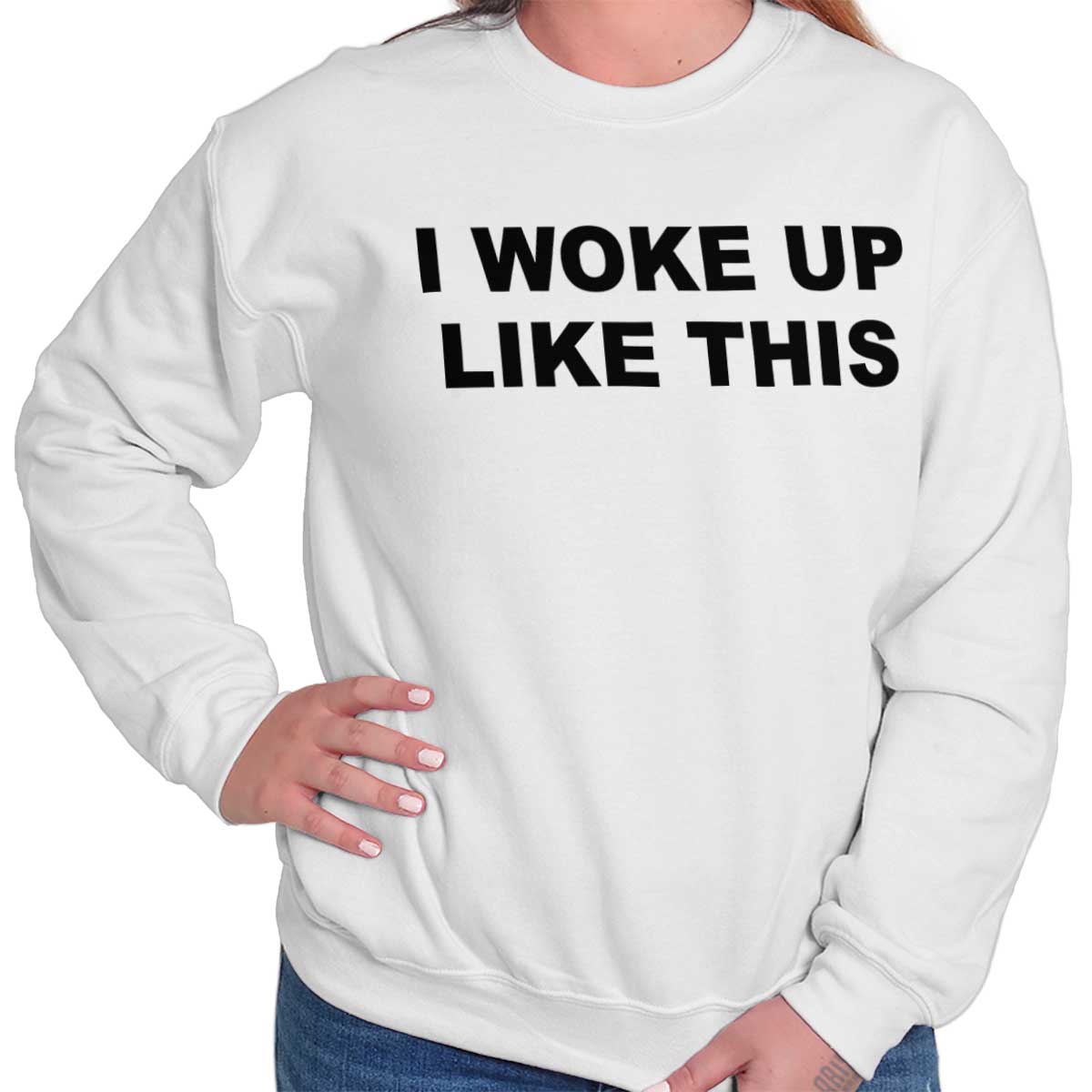 If you are someone who doesn't like to do much after waking up than this sweatshirt could be just what you need to either give an excuse or perhaps brag a little. Your mornings vary and that is natural; sometimes you wake up looking refreshed and beautiful, and other days not so much. Use this sweatshirt in either situation and show people that you woke up looking that's great, or show people that you didn't purposefully look that bad, you just woke up like that, it really is the perfect excuse. If you're looking good that morning then you can brag.