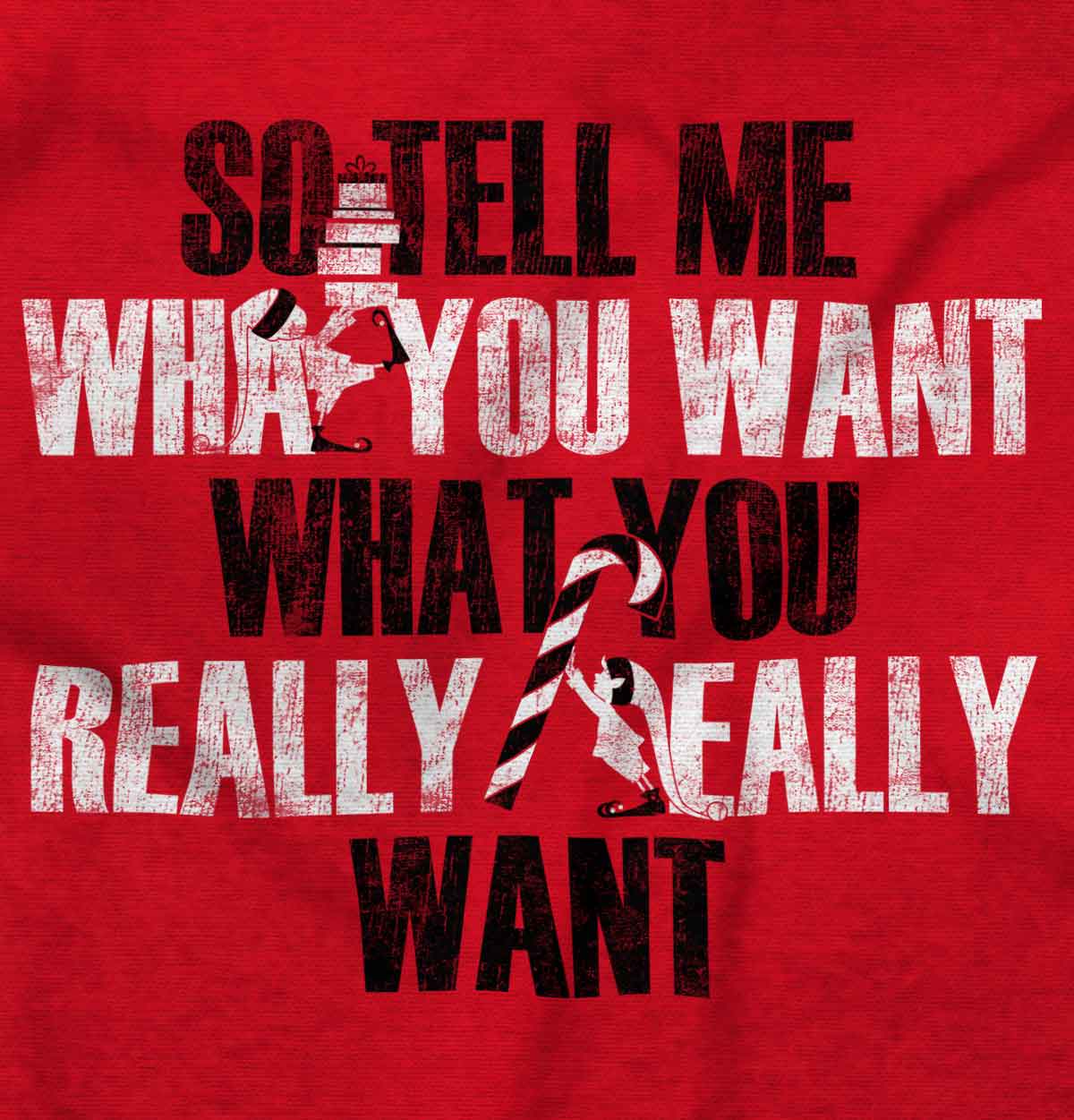 We all make a list of what we want for Christmas. This list doesn’t need to be written down. It can be as simple as mentioning it to someone - you’ll hint at a gift in conversation. You’ll be polite. It won’t be anything TOO extravagant. Or anything that would be beyond someone’s means. But still - you’ll have your list. It’ll be in the back of your mind - filled with things that you REALLY want. And then, you’ll have another list - even further back. Filled with what you really REALLY want. And we all know what that is…This T Shirt! Merry Christmas!