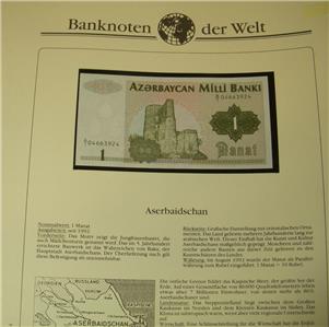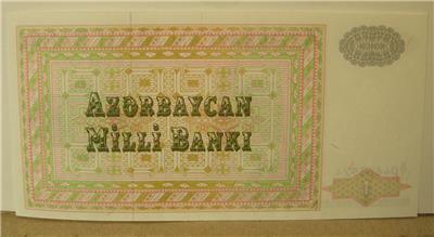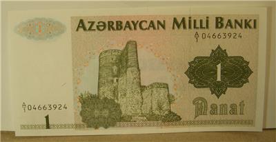 AZERBAIJAN 1 MANAT P11 1992 OCHRE 1st BANK NOTEĀ Crisp Uncirculated