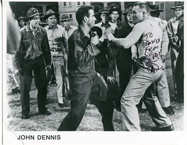 HANDIGNED 8" " x 10" BLACK & WHITE PHOTOGRAPH BY JOHN DENNIS (1925-2004). HE HAS INSCRIBED "TO DENNIS" HE WAS A CHARACTER ACTOR WHO APPEARED AS A "TOUGH GUY" IN MANY MOVIES AND TELEVSION SHOWS INCLUDING, "I MOBSTER", "THE THIN MAN", "MAVERICK", "77 SUNSET STRIP", "PERRY MASON", "WAGON TRAIN", 'BATMAN", "THE MOD SQUAD", "YOUNG FRANKENSTEIN" AND "CONQUEST OF THE PLANET OF THE APES".