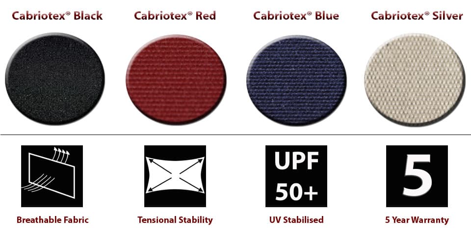 A: The Cabrio Shield® is made from Cabriotex® CSS fabric. Cabriotex® CSS is an exceptional outdoor fabric that is breathable, UV stabilised against colour fading and coated in an anti-fungal fabric guard. The fabric is also warranted for 5 years. The Cabrio Shield® will enhance the look of your car, when compared to many of the cheap covers out there.