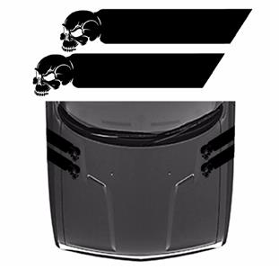 5" SKULL Fender Hood Hash Bar Racing Stripes. (Fits Dodge Challenger & fits most cars and trucks.)