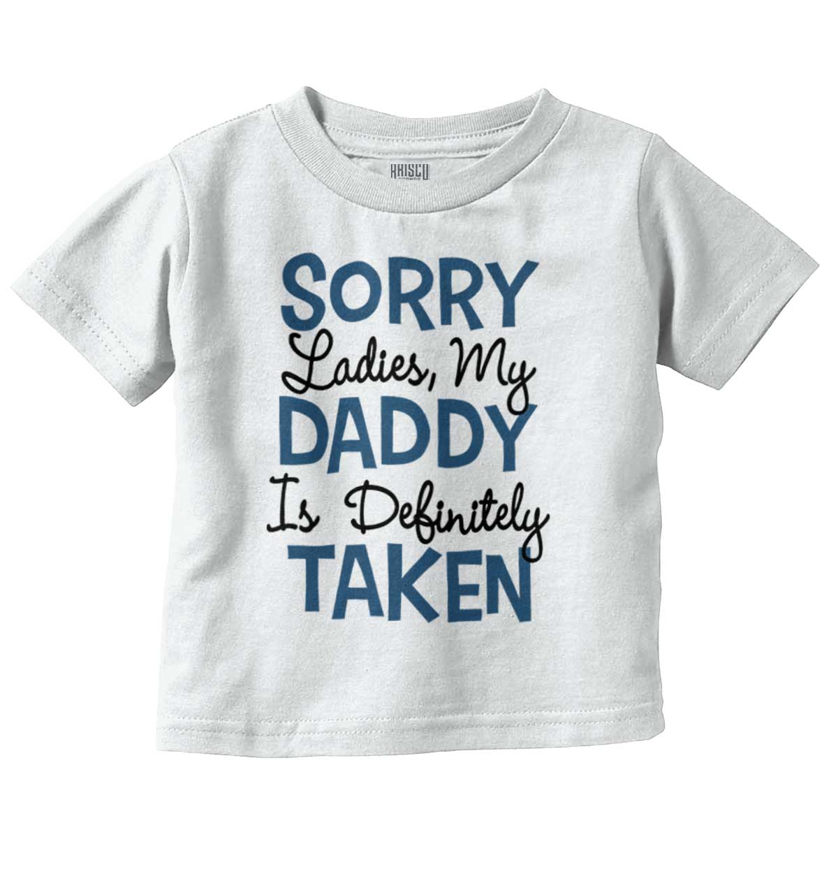 The best kind of pick-up line is the one that is never said! Everyone knows that a baby attracts more women than all the money and diamonds in the world! That would have been great when you were actually single but, these days you are definitely taken. Dress your baby in this cute daddy Infant Toddler T Shirt and show all those ladies that are swarming around you and your child that you are taken. At least with this cute daddy Infant Toddler T Shirt you can do it in a cute way that makes it seem like your baby is telling them and that's always fun!