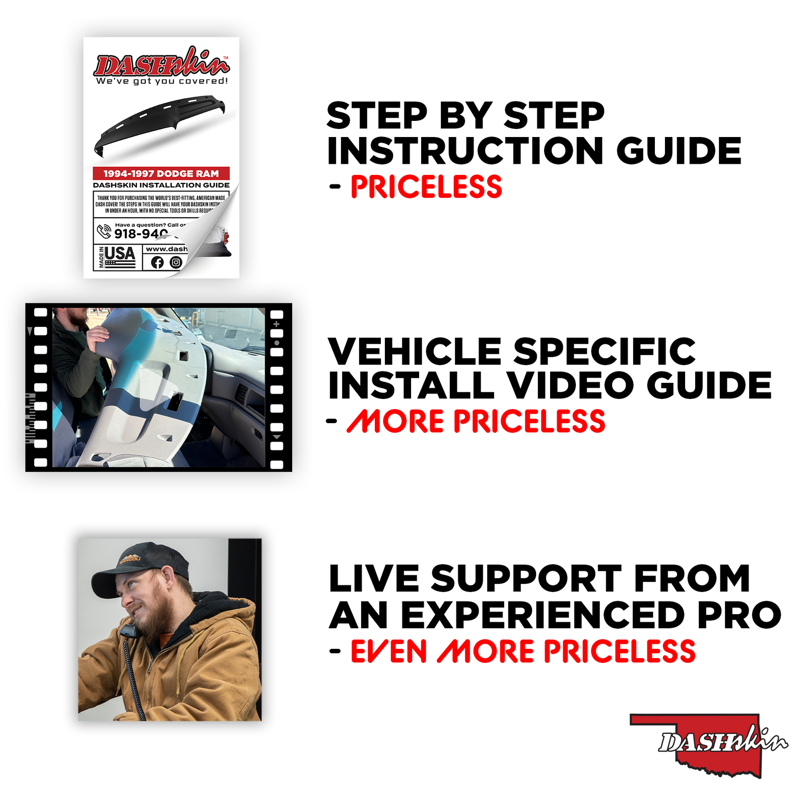 3. VEHICLE-SPECIFIC INSTRUCTIONS - All of our products include vehicle-specific color instruction guides that cover every step of the process in great detail. Most of our catalog also has full length install videos as well!