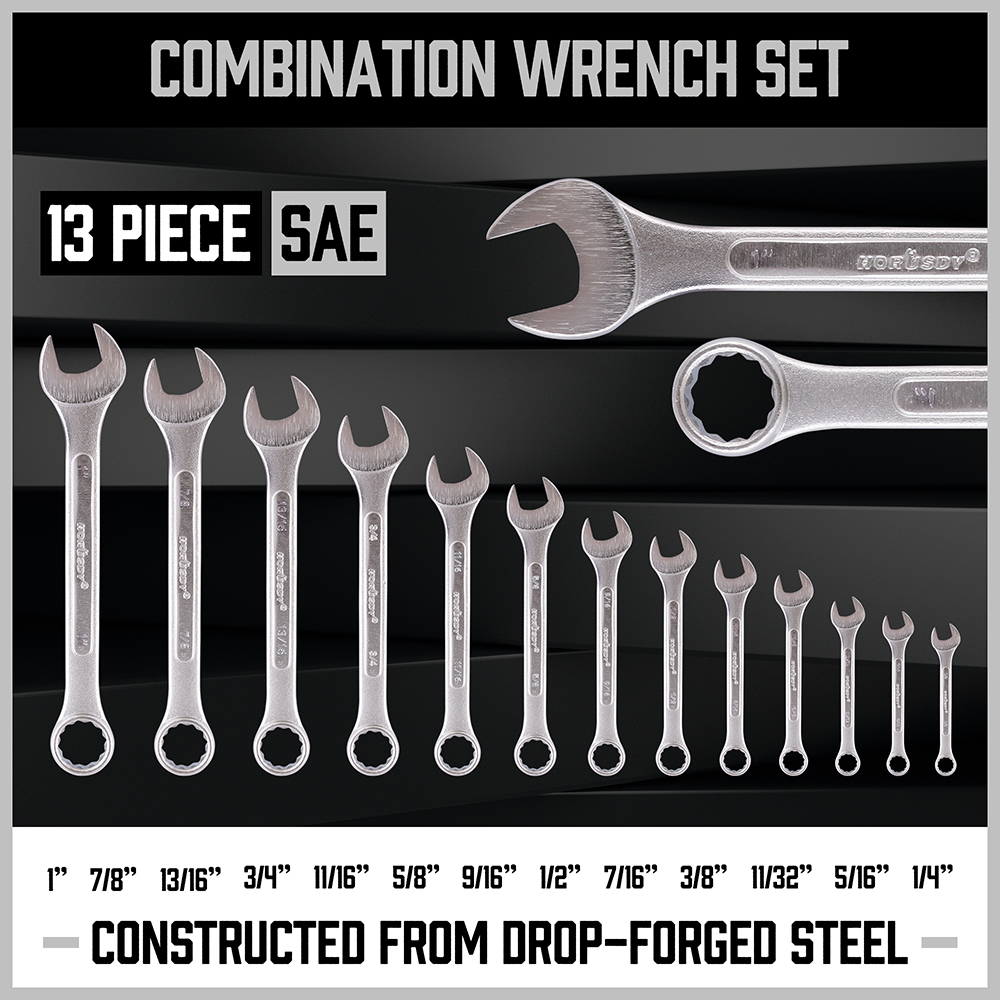 · 1/4", 5/16", 3/8", 7/16", 1/2", 9/16", 5/8", 11/16", 3/4",13/16", 7/8", 15/16", 1"