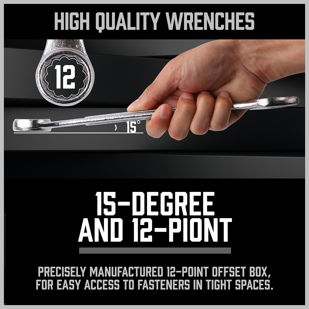 30pc Combination Wrench Spanner Set Duo SAE Metric Ring Standard Tool Extra long
