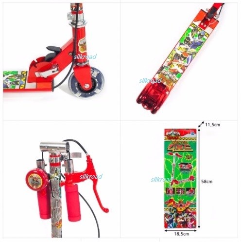 Power Rangers Foldable Aluminum Kick Scooter for Kids w/ Hand Brake Lever, Bell