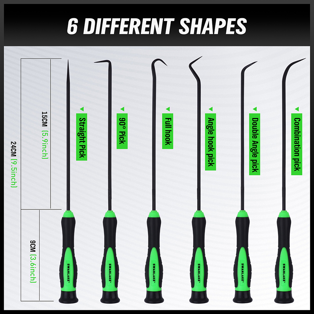 6pc Pick & Hook Set Extra Long O-Ring & Seal Remover Soft Grip Assorted Shapes