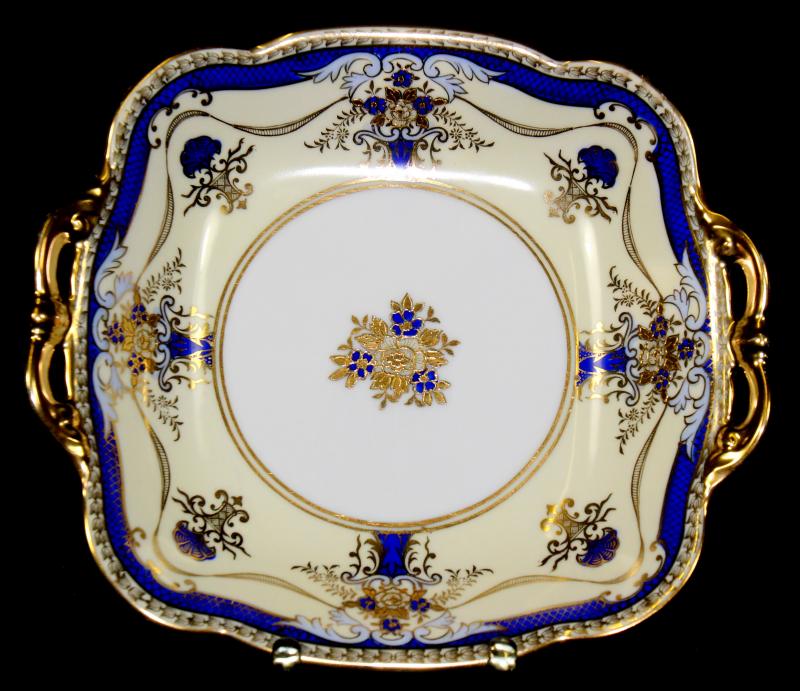 wunderschöne JAPANISCHE SCHALE der Manufaktur NOKITARE in einem edlen blau-goldenen Dekor mit Blattgoldeinlagen.