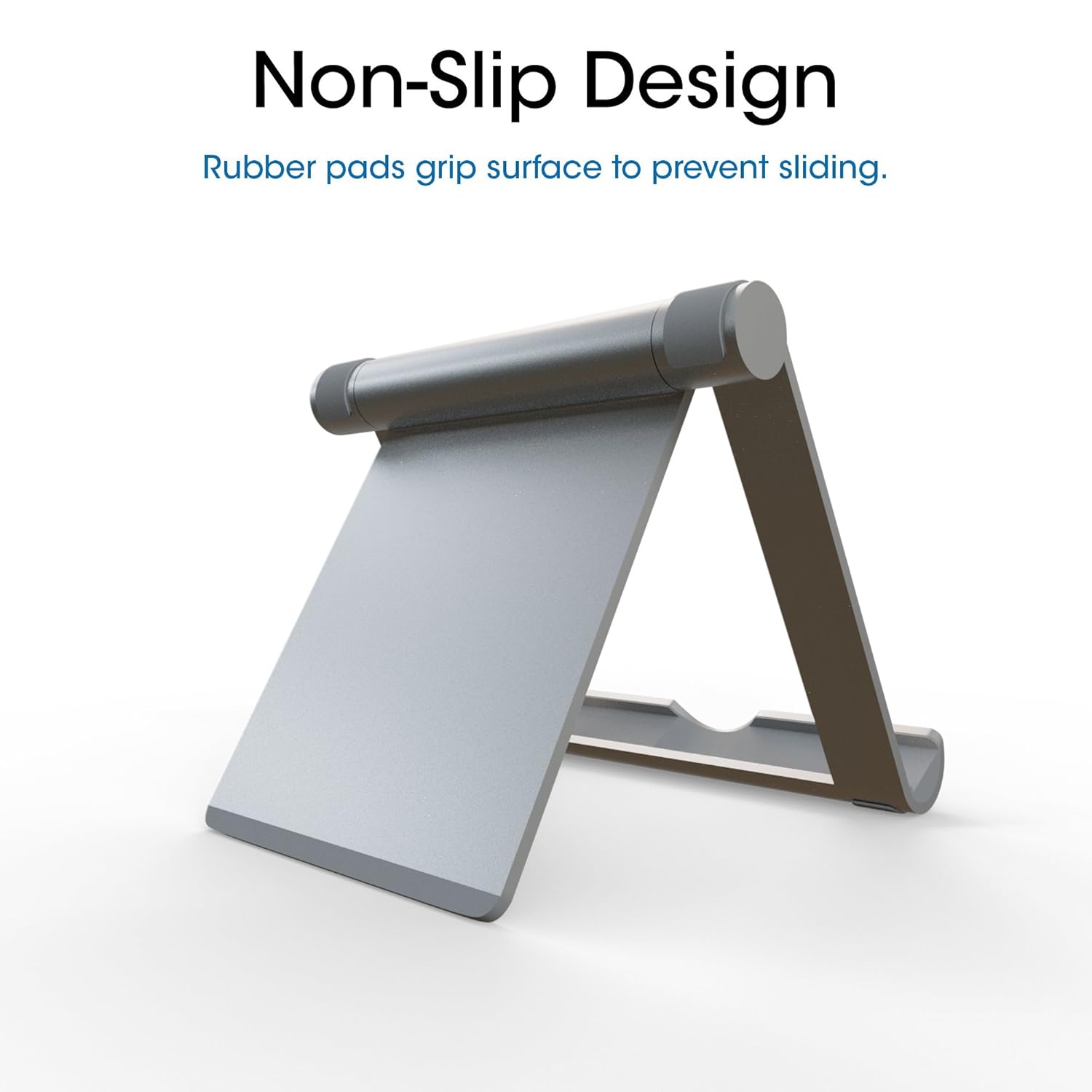 The TechMatte Multi-Angle Aluminum Desktop Stand is sleek and simple with two-tone colors that beautifully compliment your device. Made of durable aluminum, the Multi-Angle Desktop Stand can securely hold just about any tablet or smartphone on the market. This accessory is designed with non-slip, firm grip tabs and liners which will protect your device and keep it in place during use. Plus, button-less adjustment enables 270-degrees of rotation which allows for optimal viewing angles. This makes it great to use while reading, watching videos, viewing photos, searching the web, and much more.