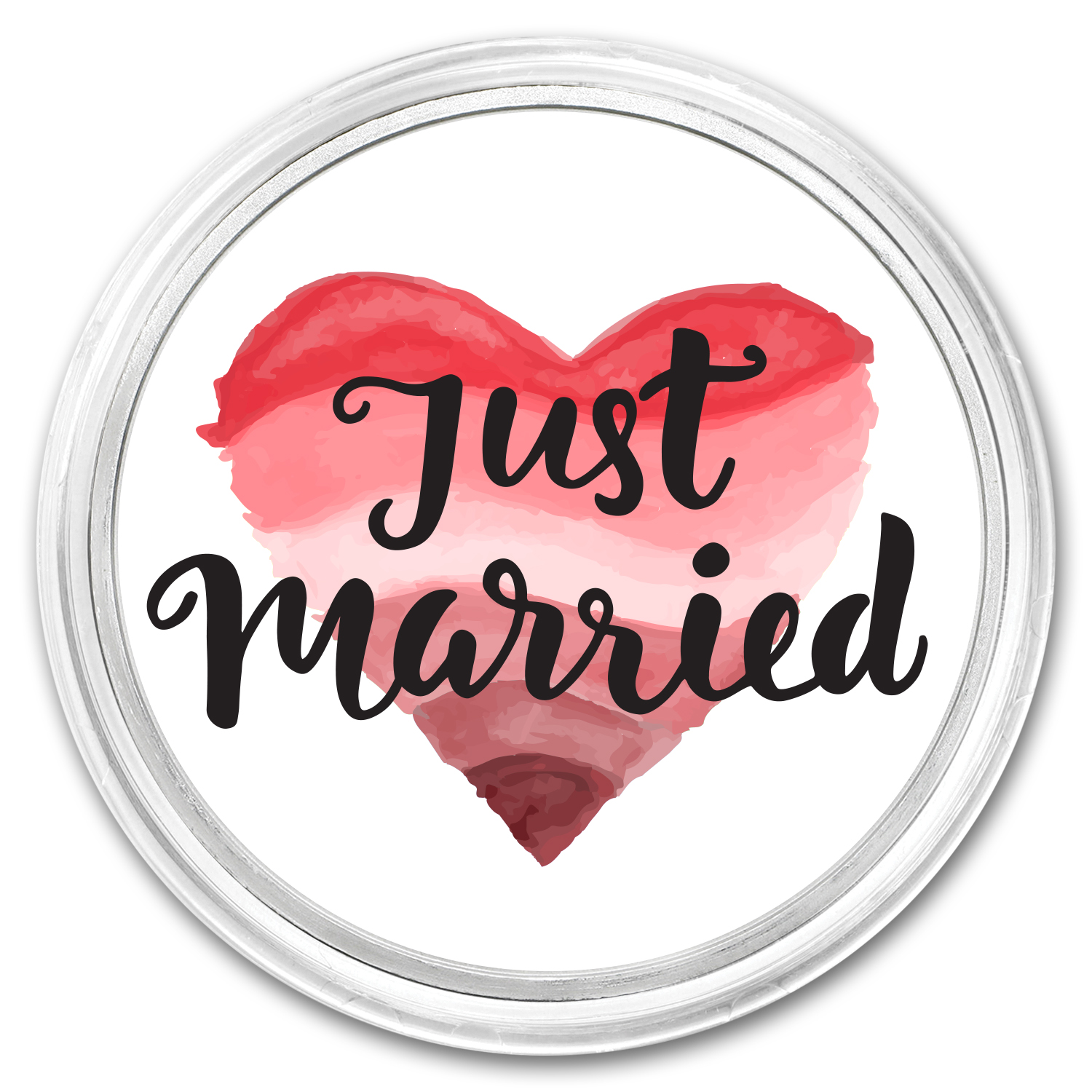 1 oz Silver Colorized Round - APMEX (Just Married - Heart)