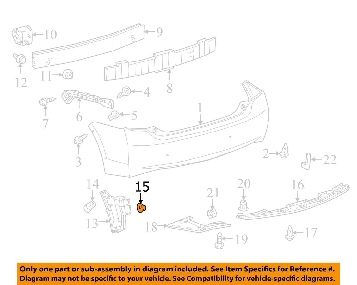 The part or sub-assembly you are buying may be referenced on a diagram above. The diagram above is a Genuine Factory image from the vehicle manufacturer showing the entire assembly surrounding the part or sub-assembly you are purchasing. ONLY the single part or sub-assembly specified in the callout "Part Ref# on Diagram" is being sold to you. Parts are shown individually with their own Ref #, while sub-assemblies may show multiple parts within a square or circle in the diagram with its own corresponding Ref #. You can find the part or sub-assembly being sold by locating the correct Part Reference # on the diagram.