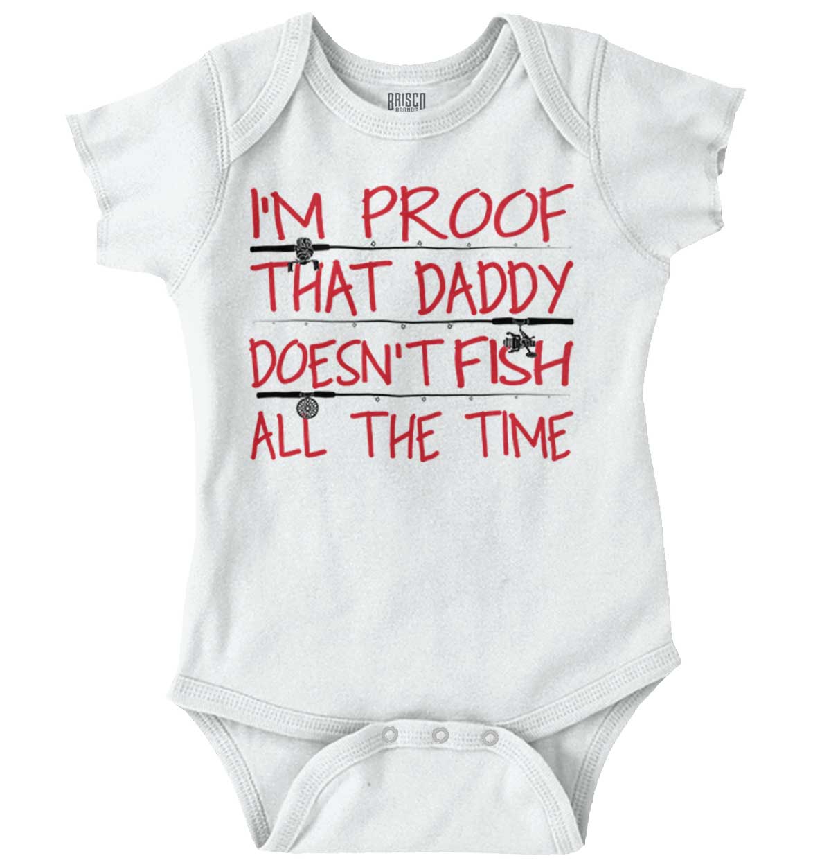Fishing is not a hobby, it's a lifestyle. We are fishermen and we must feed the monkey (or fish) when it comes to fishing! We spend our days and nights at the lake, river, and ocean or anywhere we can possibly cast into a body of water that may have fish in it! Sometimes though, you have to stop fishing and do some other things... basic things like eating and sleeping and well... like this funny fishing Romper Bodysuit says, your baby is proof that you don't fish ALL the time! Dress your baby in this and you're sure to get some laughs!