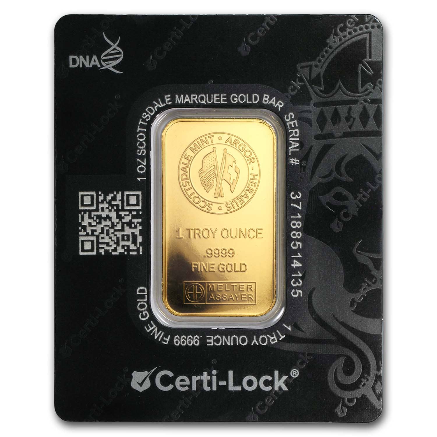 - Individual bars are presented in a black Certi-Lock® assay, featuring a unique serial number, along with the weight and authentication of the bar by the assayer.