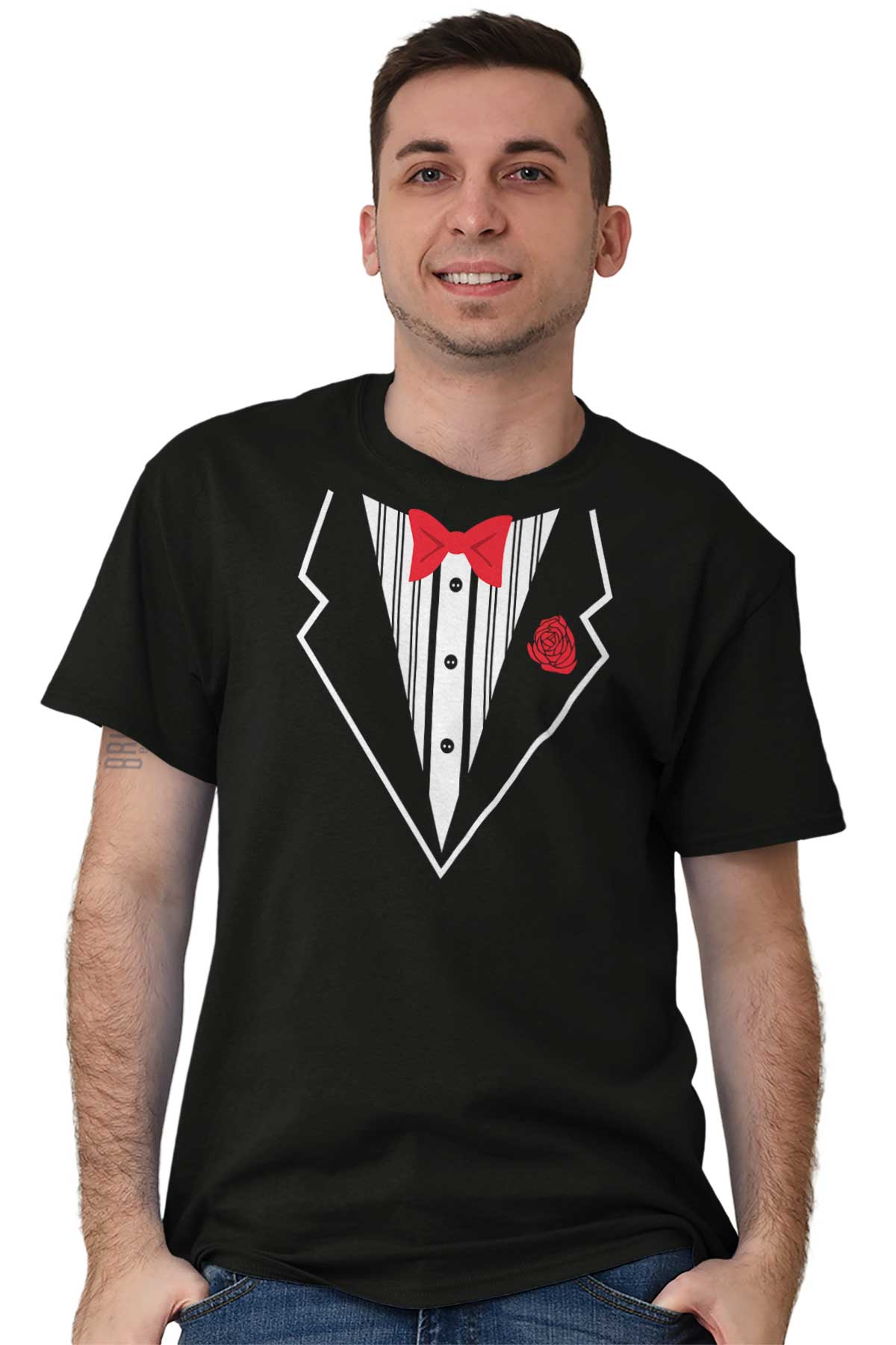 Classic tuxes never go out of style, and neither does a great sense of humor! A printed tuxedo T Shirt is always funny. Wear it out for dirnks with the guys or to a legitimately formal event - just don't tell them we sent you!