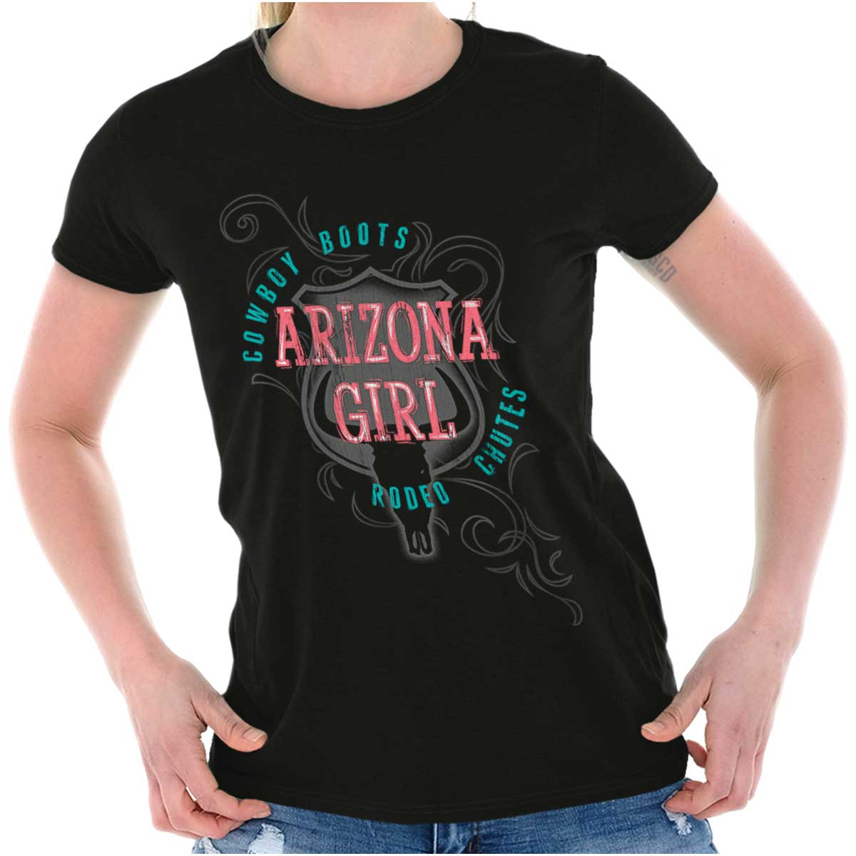 Maybe you've just visited Arizona for the first time. Maybe it's your favorite annual vacation spot. Or maybe you call it home! No matter how you came to love this state, you can wear this Ladies T Shirt to show that you're a true blue Arizona cowgirl. Or...did you forget to pick up gifts for your friends back home? Try one of our Ladies T Shirts instead! We won't tell your friends that you were too busy having fun at the Grand Canyon to shop for them!