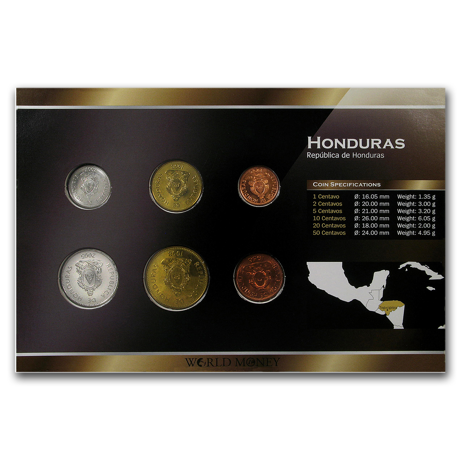 These Honduras coin sets include denominations from 1 Centavo through 50 Centavos, and make great gifts or starter sets for the beginning World coin collector. Add one of these coin sets to your cart today!