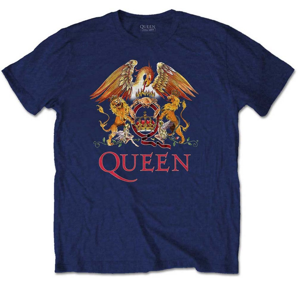 Brand: 100% Official Queen 'Classic Crest' (Navy) T-Shirt printed on 100% cotton garment