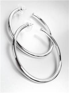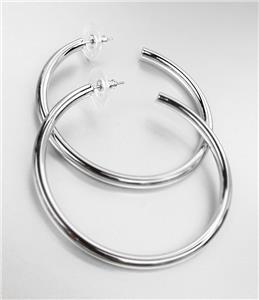 GORGEOUS Classic Lightweight Silver Round Hoop w Disks Backs Post Earrings