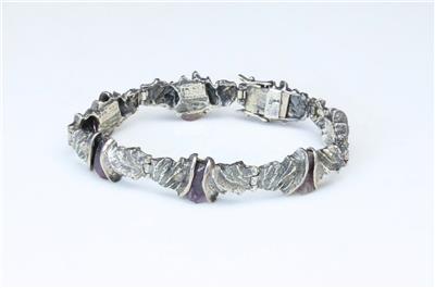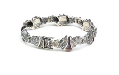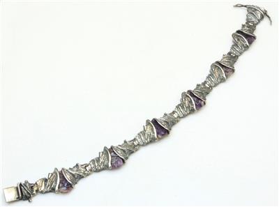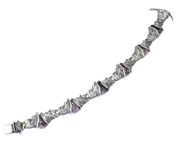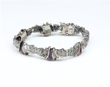 Vintage Brutalist Artisan Sterling Silver and Amethyst Bracelet