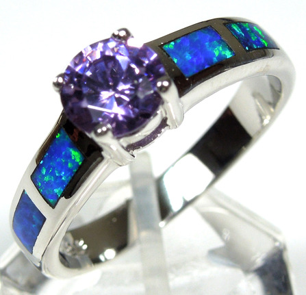 Fabulous brand new high quality silver ring with lab created blue inlay Fire Opal and a 6mm faceted round Amethyst stone set on solid 925 sterling silver and stamped with 925. Our silver is genuine 925 sterling silver and Rhodium plated for better quality and prolonged shine. You will receive the item in a gift box. Thanks for looking and check out more items in my Ebay Store for more great items and deals!