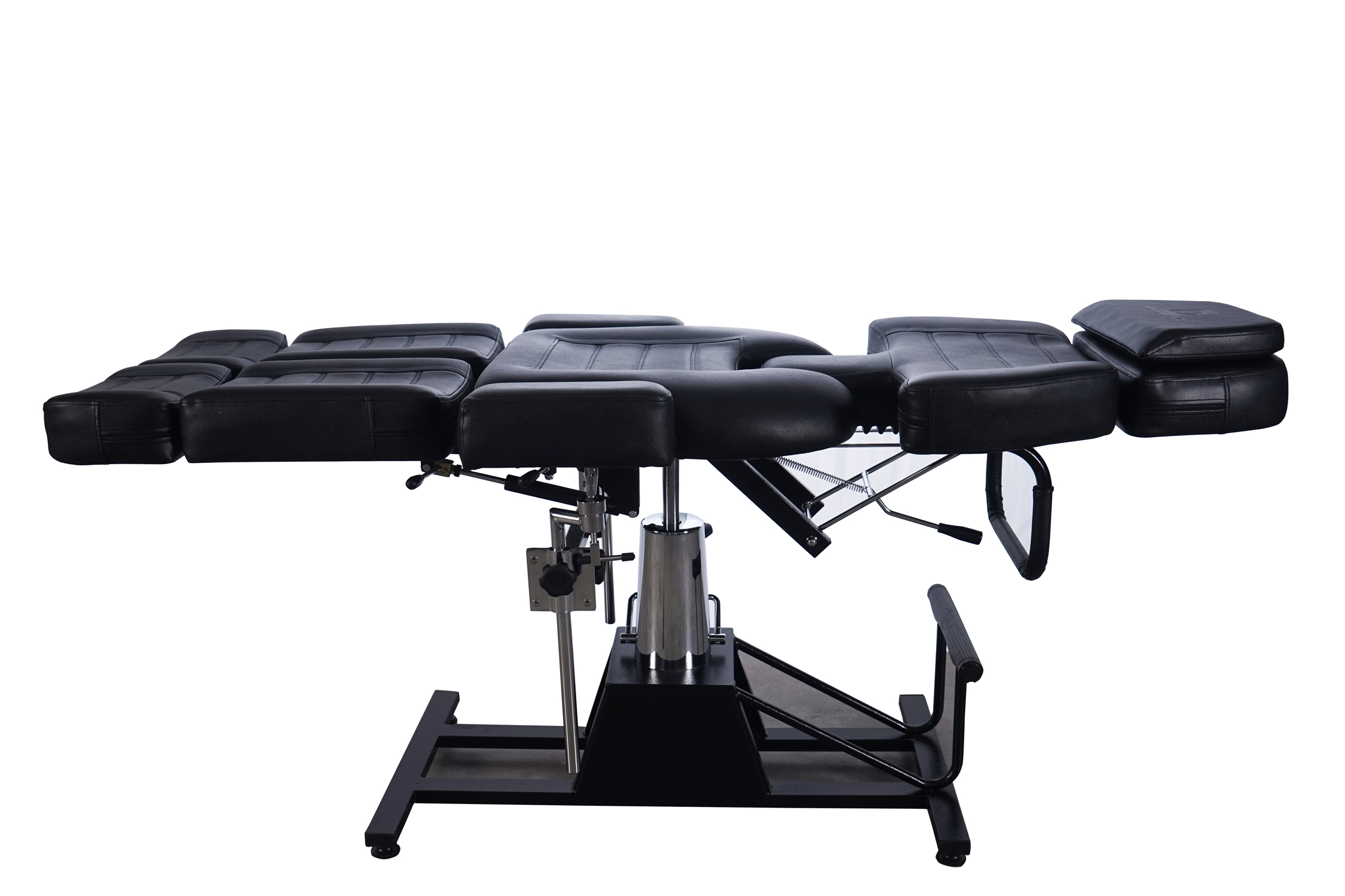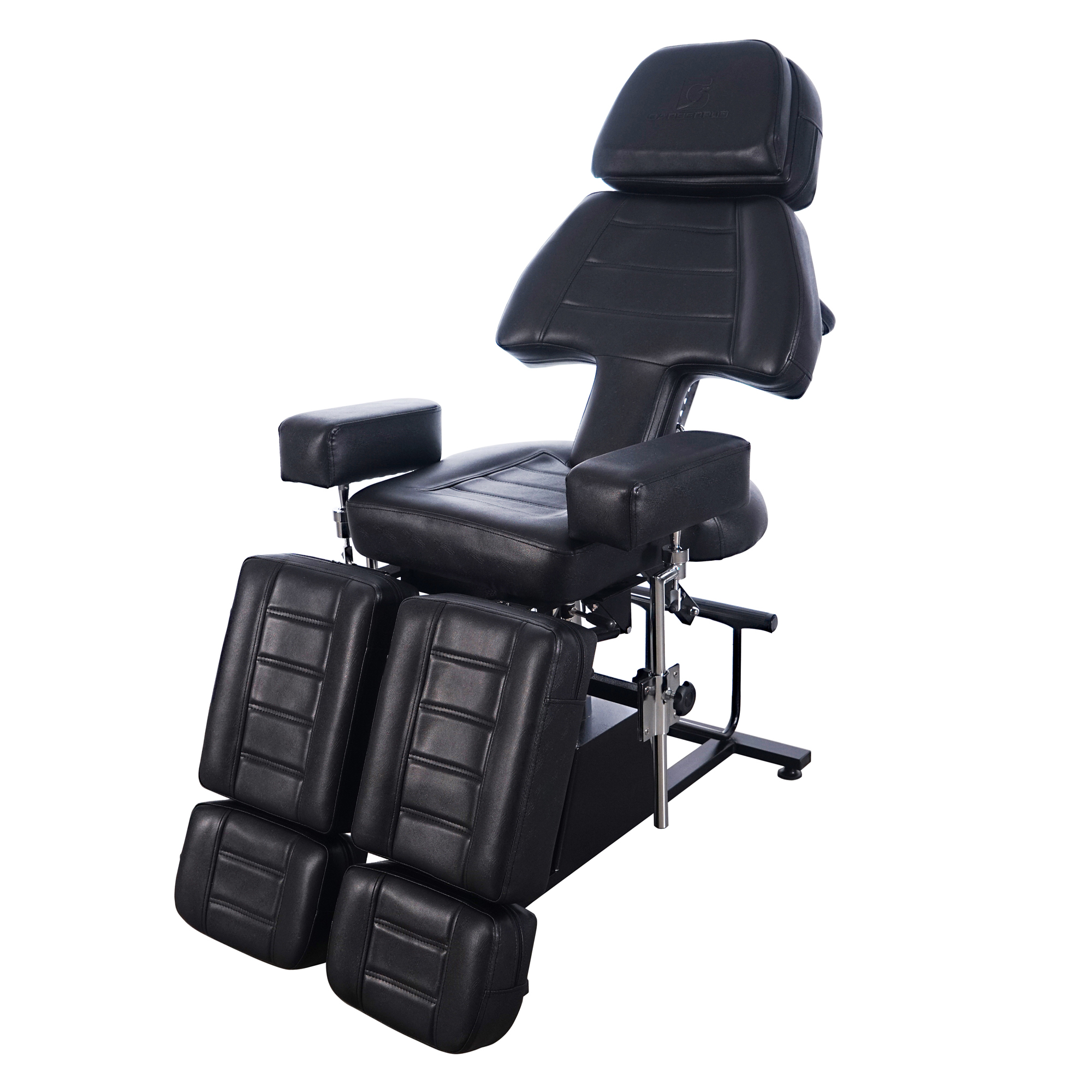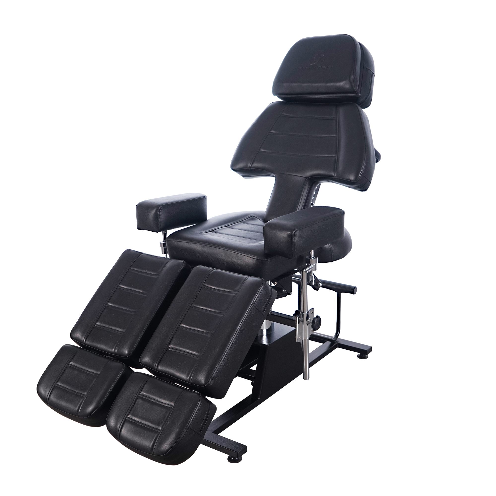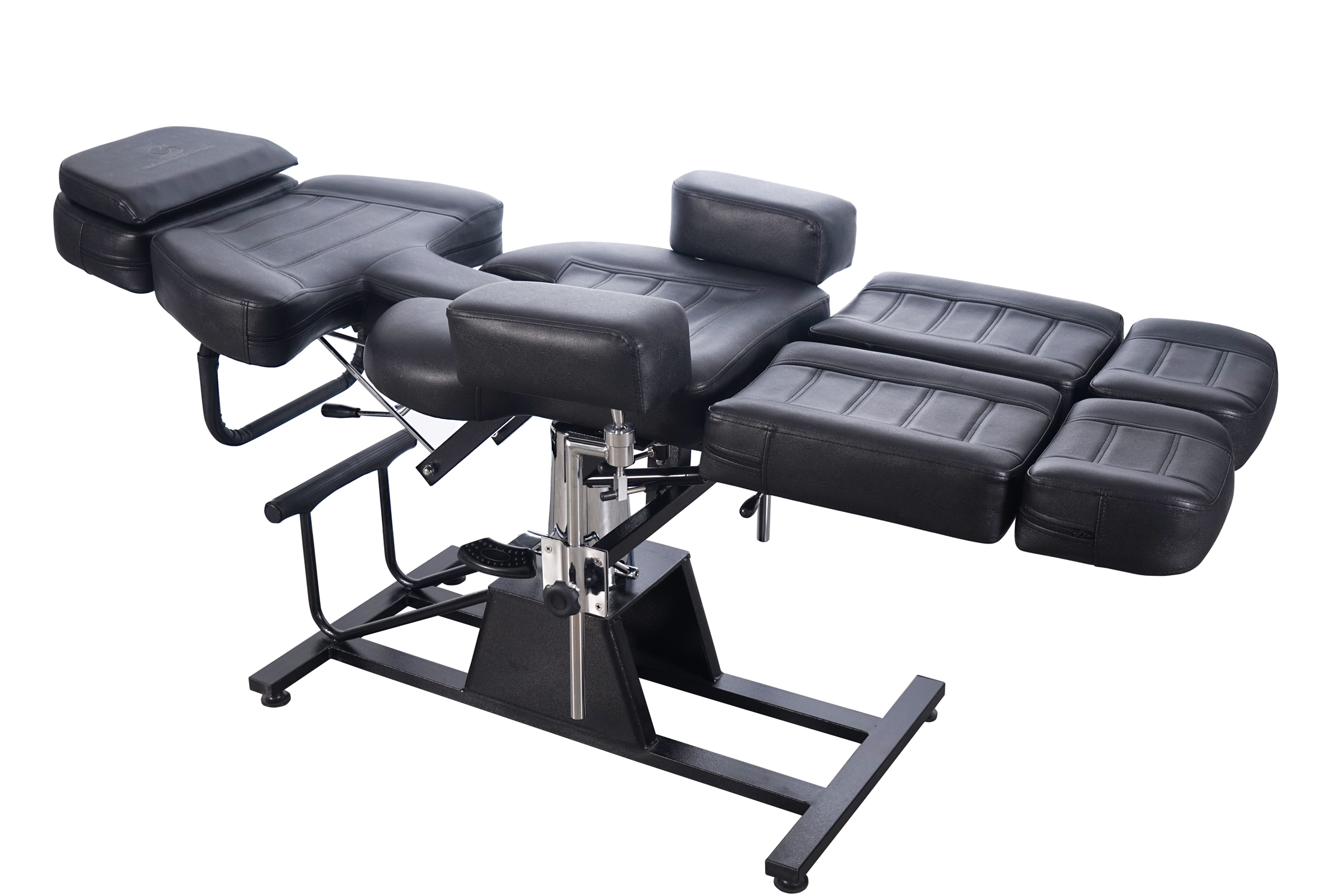 + Stabile Stahlbasis mit Hydraulikzylinder bietet Liftfunktion und 360 Grad Dreh, drei Zonen Kosmetikliege, Rücklehne und Fußteil sind per Hebel manuell bis 180 Grad verstellbar.