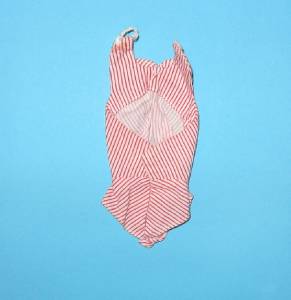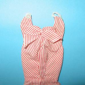 Vintage Barbie 981 Busy Gal Red White Stripe halter body blouse with bow tie neckline only from 1960-1961. Near mint condition. Nice bright color, no rips, tears, stains or repairs.
