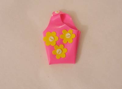 Vintage Skipper # 1738 Fancy Pants hot pink vinyl/plastic purse tote bag with white flower accents. Near Mint condition, bright color, no damage, no repairs.