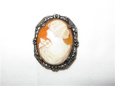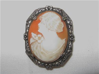 Very Rare Ostby Barton Sterling Framed Cameo Brooch Pin