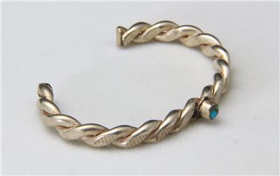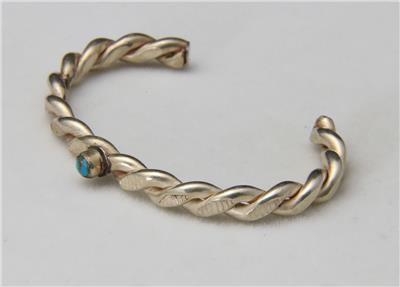 -Vintage turquoise and silver two strand twist child's cuff bracelet BEFORE BIDDING