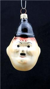 Vintage 1995 retired and rare Christopher Radko Christmas handcrafted glass ornament pair "Another Fine Mess" Laurel & Hardy heads/faces (95-160-0 & 95-160-0A). Ornaments are in wonderful condition overall. Hardy has a few spots of missing paint (nose, chin, back of head). Please see supersized images as part of condition description. Laurel ornament measures 4" tall by 1.25" wide and 1.75" deep. Hardy ornament measures 3.5" tall by 2.5" wide and 2.15" deep. Ornaments do not come with original box or tags, but each does have the original Radko cap. Inventory: OR-07