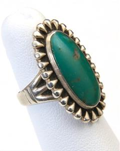 - Early sterling silver and natural green turquoise ring BEFORE BIDDING