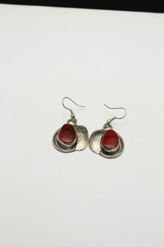 -Artisan made Mexican sterling silver and red turquoise necklace/bracelet/earrings set