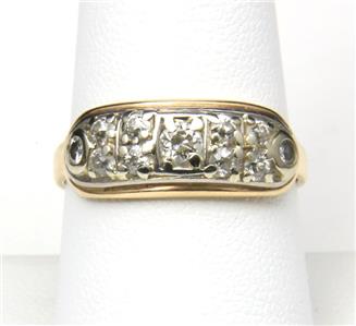 - Vintage Art Deco 14k Yellow & White Gold (tested) & Cluster Diamond Ring