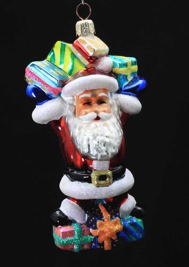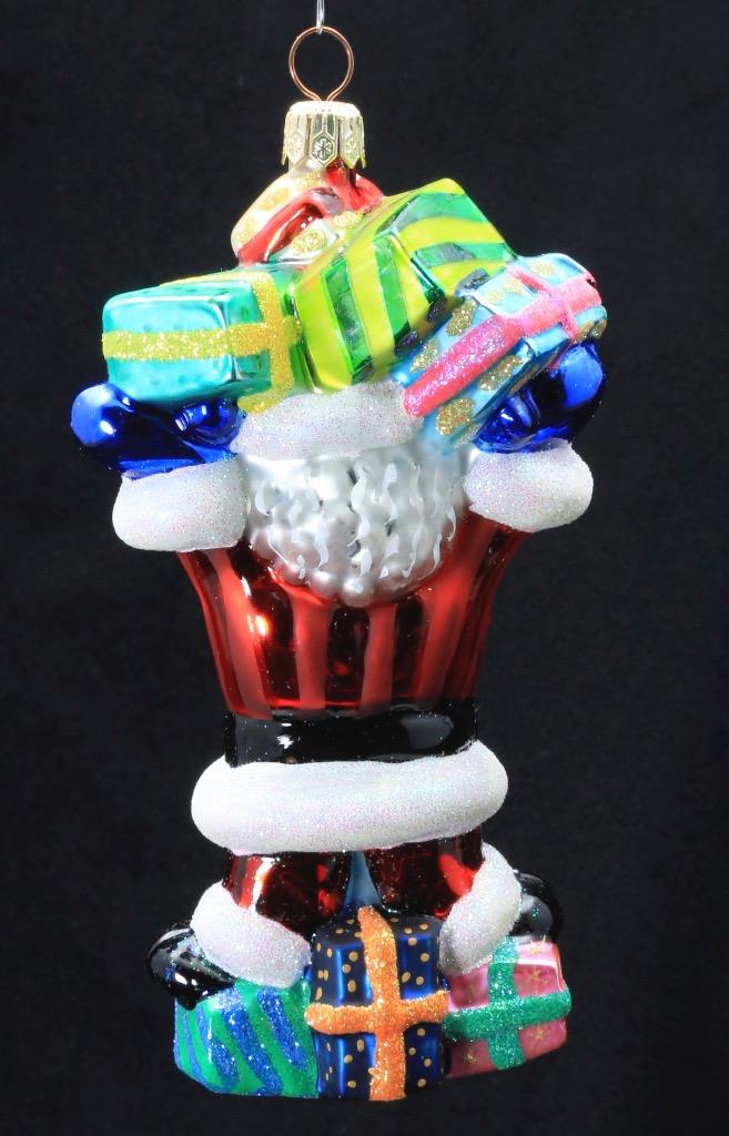 - Christopher Radko hand-painted glass Christmas ornament "Happy Handful" Santa with presents