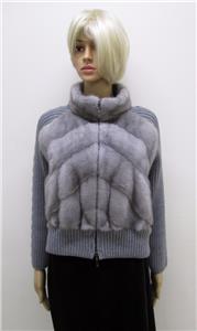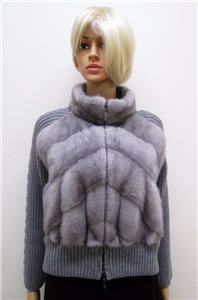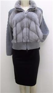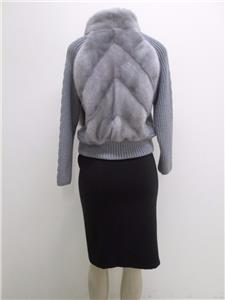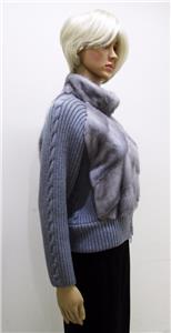 Description: Yes!!...natural saphire mink on the front and back panels with 100% sexy grey color wool woven into a sweater producing this uniquely gorgeous combo.Lightweight and versatile all year round.