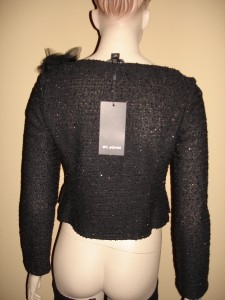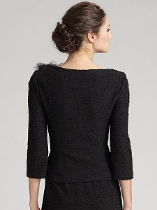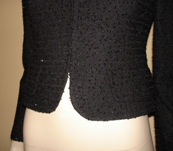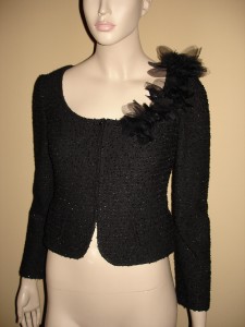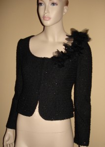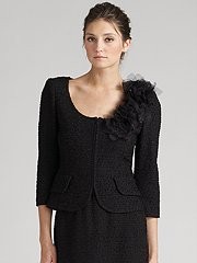 This listing is for the Jacket onlyBrand new with tags Retail: $1295Style #: K621192Color: Caviar ShimmerSize: 4Armpit to armpit 17 1/2" Shoulder 15" Sleeve 22" Length 17"A beautiful and classy St. John Collection lightweight jacket in Caviar shimmer a fine textured knit with hints of shimmer has woven flower detail accenting the scoop-neck. Features a slim fit, three-quarter sleeves, front zipper closure.Two front faux flap pockets. Front and back seaming. Fabric: 43% Wool 39% Rayon 12% Polyamide 6% Polyester Made in the USA You will love this beautiful and stunning jacket from St. John!