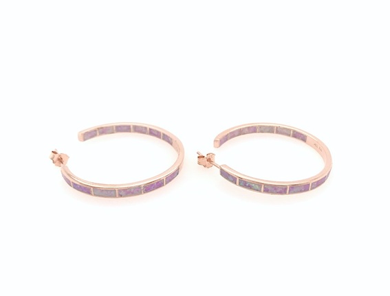 Brand new 14kt Rose Gold plated over sterling silver endless hoop earrings with Pink Fire Opals Inlay on solid 925 sterling silver and stamped with 925. There are opal inlay on the front of the hoop and inside. Hoops measures 1" wide or 27mm. The width of the front of the earrings are 3mm (1/8"). Our silver is genuine 925 sterling silver. You will receive the item in a gift box. Thanks for looking and check out more items in my Ebay Store for more great items and deals!