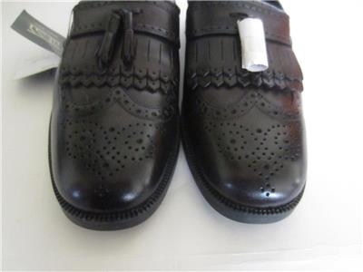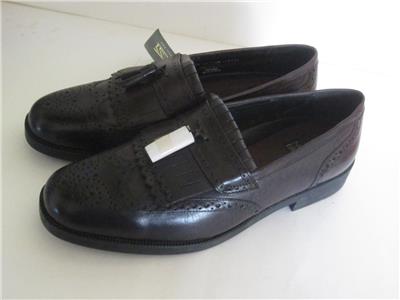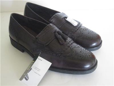 Very nice high quality vintage slip on dressy loafer shoes by Nunn Bush. Brand new with original tag still attached and orginal paper covering the tassel Such a deep burgundy color it almost looks black