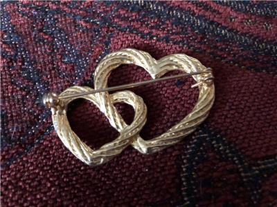 Vintage intertwined twisted heart brooch. Goldtone. 2” wide.