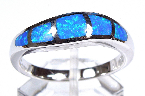 Brand new high quality 925 sterling silver band ring with blue inlay Fire Opal stones on solid 925 sterling silver and stamped with 925. The width of the ring measures 5.5mm. Our silver is genuine 925 sterling silver and Rhodium plated for better quality and prolonged shine. You will receive the item in a gift box. Please ask for other sizes available. Thanks for looking and check out more items in my Ebay Store for more great items and deals!