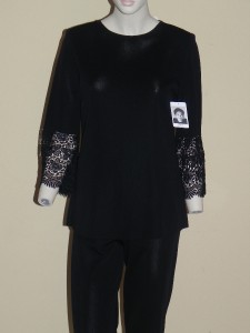 Description Brand new with tags. Retail: $476 Color: Black Size: Small Measurements: Top: Armpit to armpit 19" Shoulder 14 1/2" Sleeve 19 1/2" Length 26 1/2" Pant: Waist 28" Hip 36" Inseam 29" Length 41" - Elegant and Beautiful Misook lace tunic with the matching pants.