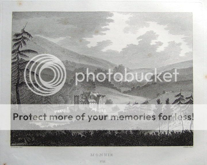 MONZIE CASTLE, CRIEFF, PERTHSHIRE, SCOTLAND original antique print 1819
