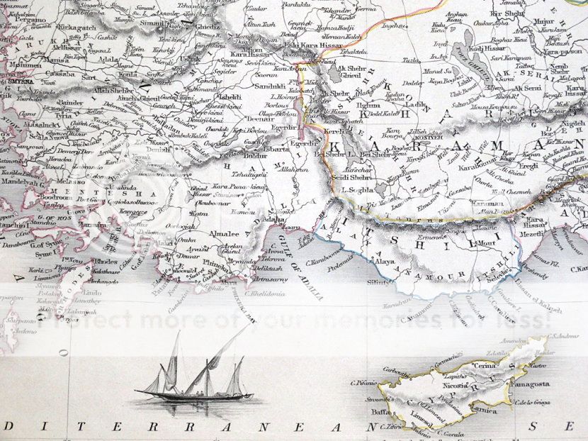 An attractive and decorative map of Asia Minor. Covers present day Turkey, Cyprus and some eastern Greek Islands.