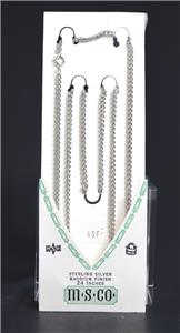 NEW 24" STERLING SILVER CURB FLAT LINK CHAIN by M.S. CO. STYLE #63F RHODIUM FINISH TO PREVENT TARNISHING Approx. 3mm wide