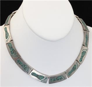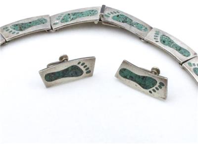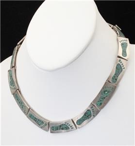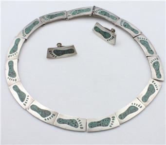 - Vintage Barefoot Sterling Silver & Crushed Natural Turquoise Necklace and Earring Set