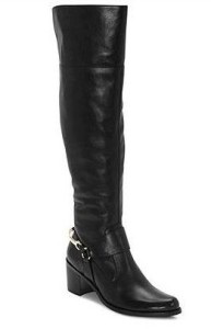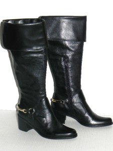 Put some luck in each and every step you take. Truth or Dare by Madonna's Erminide over-the-knee riding boots features a gold horseshoe on the back of the heel for a look that's truly unique. - Leather upper with fold-over cuff at collar.