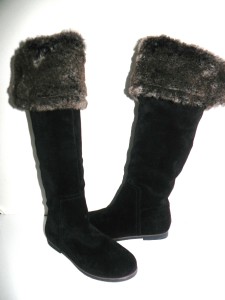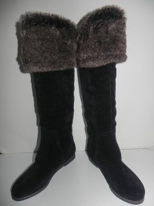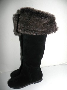 Beautiful Sam Edelman knee high Black suede boots with fold over faux fur cuff -