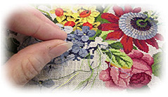 Needlepoint is the technique of forming stitches on an open-weave fabric called canvas. The canvas is constructed with vertical and horizontal threads that are woven together to make precisely placed holes between threads. The points at which these threads meet are called meshes. Needlepoint designs are more durable than other types of needlecrafts, making them well suited for chair seats, pillows, and rugs. In the modern day and age, the canvas is no longer limited to an open weave fabric; it is made of plastic in different shapes and colors and is used for all kinds of different products..