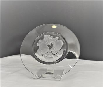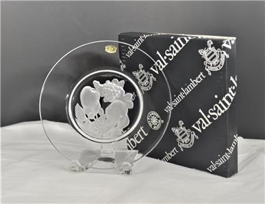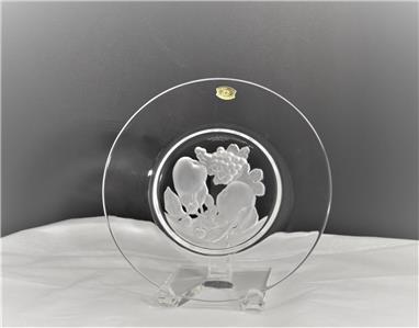 New in Box Val St. Lambert 'BRUSSELS' Pattern Intaglio Fruit Design, Crystal Glass Plate, Etched Val St. Lambert on Top Center Rim.